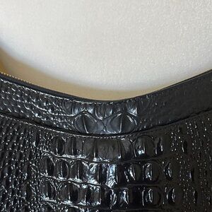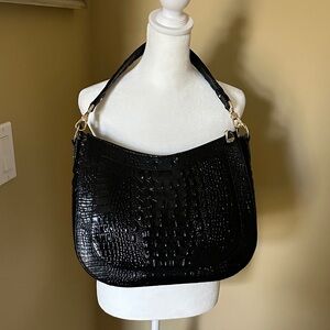 Chic black shoulder bag with croc-embossed texture. Ideal for versatile styling.