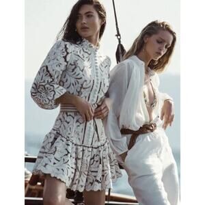 Zimmermann Edie Button Down Short Dress Embroidered Lace Mini Belted 0 US 4