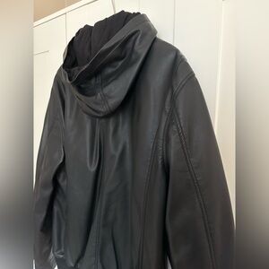• Faux-leather fabric; quilted shoulder panels; quilted lining