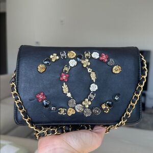 A true statement vintage Chanel piece – perfect as a clutch, tucked under the arm, or styled as a collectible display bag. The bold graphic design and rare clear chain detail make it a standout Chanel collector’s item.