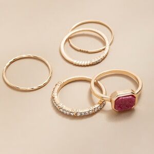 Elegant gold tone ring set with a pink pave stone accent. Perfect for adding a touch of sophistication.