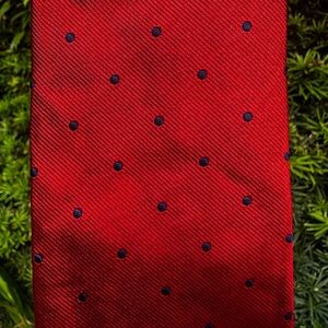 Red with navy polka dots