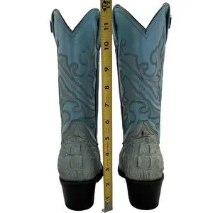 Rogers Turquoise Croc-Embossed Cowboy Boots