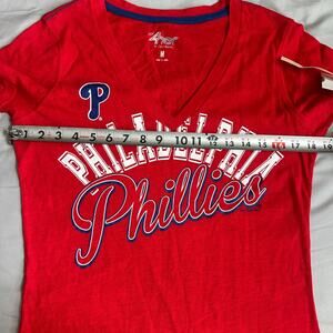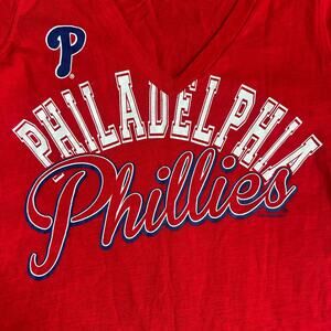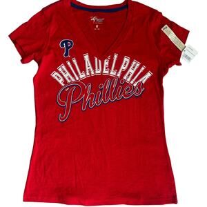 G-III 4her Red, MLB Philadelphia Phillies, V-Neck, Short Sleeve T-Shirt NWT- M