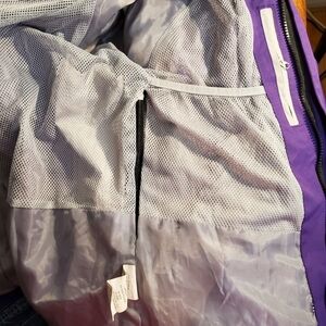 This is a great jacket that still has loads of life left in it, if it were my size, I would keep it! Alas, it is way too small! I love that it has an inner 2-way zipper and pockets in all the right places. There are zippers on each side that open vents to help you control your temperature. There is a pocket inside and a pocket on the left sleeve.
