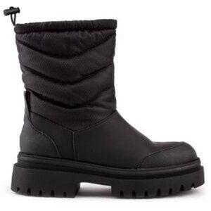 Rock your style in these black Rocket Dog Dita winter style boots, featuring a heel toggle and pull-tab. The easy-on design is perfect for on the go, from your local shopping trips, everyday errand running to your day out and about. Stay cozy all season long in these puffer snow boots from Rocket Dog. Pull-on silhouette with an almond toe and bungee closure at the quilted upper. Finish with a chunky lugged sole.