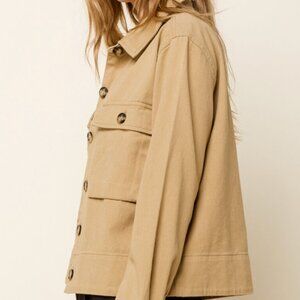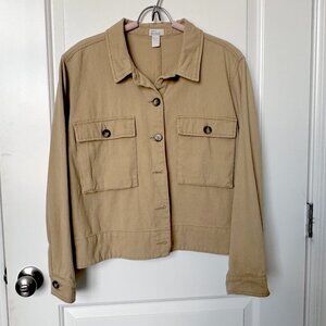 Utility Jacket Women Size Large Tan Button-Down Long Sleeved