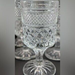 Anchor Hocking WEXFORD Water, Wine Goblets Glass Clear 5.5" Vintage Set of 5. They are thick glass with a beautiful design. 5 1/2" Tall and 2 1/2" Wide approximately Condition is Lovingly Pre Owned No chips or marks