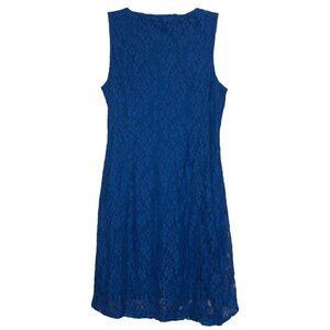 SPENSE PETITE Blue Lace Sleeveless Scoop Neck Sheath Dress with Ruched Overlay on the Skirt. Size PL Petite Large. No visible flaws. Excellent pre-owned condition. LIKE NEW!