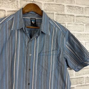 Duluth Trading Untucked Light Blue Bicycle AOP Casual Button Up Shirt 2XLT SLIM