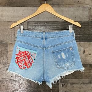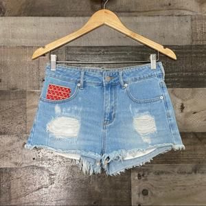 Kendall & Kylie Embroidered Jean Shorts Blue High Rise Cutoff Distressed Size 5