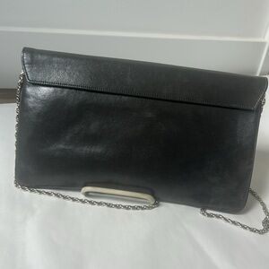 Vintage MardaneElegant Dark Grey Leather Clutch with Silver Accent