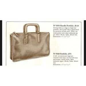 VTG Coach Handle Portfolio 5050 Mocha Leather Brass Early 80s NYC Glue In + Tag