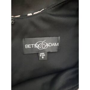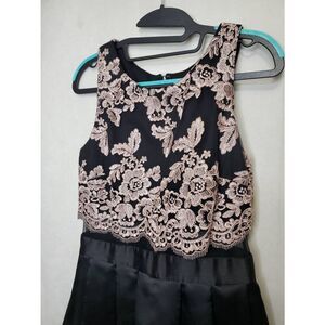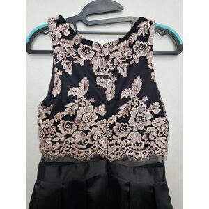 Betsy & Adam A Line Pleated Skirt Mesh Embroidered Formal Pink and Black Dress