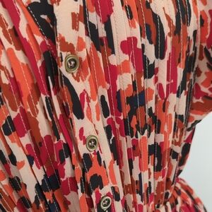 Elevate your style with this vibrant multicolor dress featuring playful ruffle sleeves. pockets, lined. Perfect for any occasion.