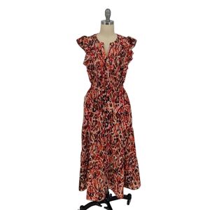 11409 THML Camo Midi Dress Red size XS bohemian summer spring resortwear preppy