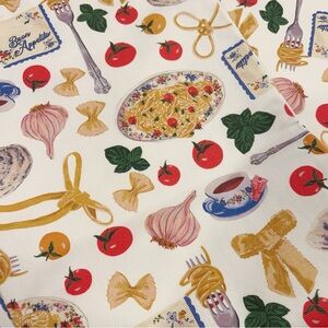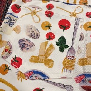 Garlic girlies, pasta girlies, and tomato girlies unit. These pants are for you. It's the viral Lisa Says Gah pasta pants. Ivory denim with scenes from an Italian restaurant print. 100% Cotton Denim. Non-stretch denim. For a comfortable fit, size up. New with tags.