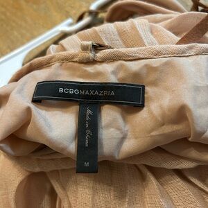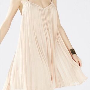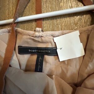 BCBGMaxAzria Soft Beige Halter Dress With Faux Leather Straps