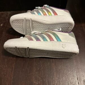 Colorful stripes and a white base make these sneakers fun and comfy. Ideal for playful adventures. Worn a couple times and grew out of them too quick - great condition!