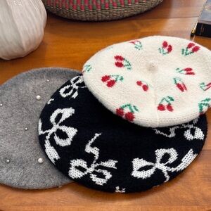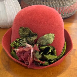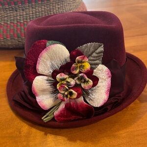 Louise Green beautiful embroidered ribbon fan beret, heathered blue. Essentially new, vintage, handmade in Los Angeles, California by Louise Green. Perfect for the cooler months through winter. Fits up to a 24” head size. Artist is retired and was one of the most sought after milliners in the US.