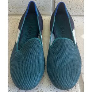 Rothy's Spruce Prep Loafer Women's Size 6.5 Green, Navy, and White Colorway Loafer Retired /Discontinued. Machine Washable/Excellent preowned condition.