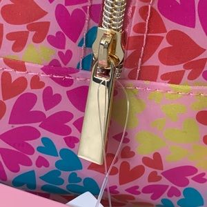 Juicy Couture Multi-Color Heart Print Soft PVC Wedge Cosmetic Bag