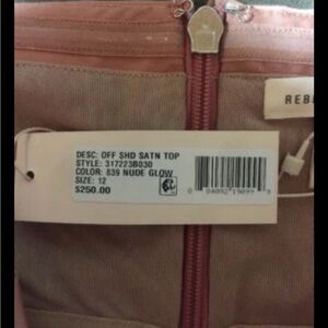 The DESIGNER Top CROP PARTY SHIRT by Rebecca Taylor is a sexy, off-shoulder blouse perfect for a night out. Made from a blend of cotton, spandex, and polyester, this cropped top features an off shoulder low cut neckline with built-in bra support, ruffle accents, and a zipper closure. The nude glow color adds a touch of sophistication to the stylish design, making it a versatile piece suitable for all seasons and various occasions. Ideal for women who appreciate designer fashion and want to make a statement at their next party. $250.00. Retail new with tags