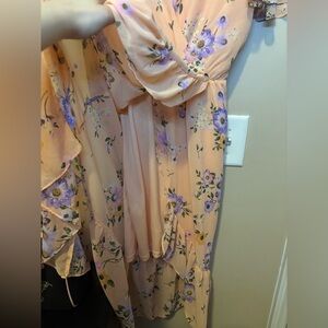 floral peach wrap dress, has optional button closure & inner slip🧡💛🩷💜💚