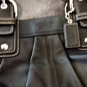 Elegant and versatile, the Y2K Coach Black Leather Tote with 4 pockets zip closure is perfect for any occasion. Crafted with high-quality leather, this bag offers both style and functionality. The sleek black color complements any outfit, making it a must-have accessory.