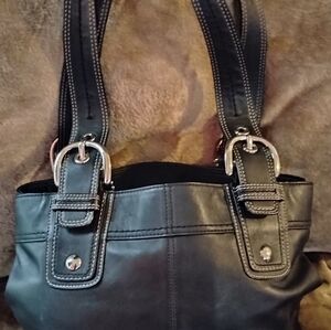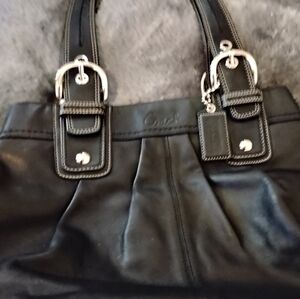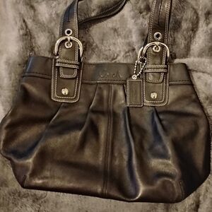 Coach Black Leather Tote Zip Closure