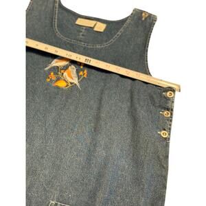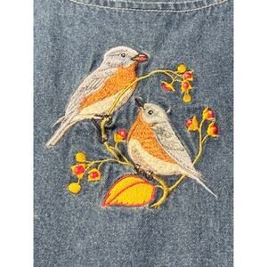 Vintage National Wildlife Federation Denim Jumper Dress Birds Embroidery Pockets