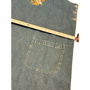 Charming and nature-inspired vintage denim jumper dress by National Wildlife Federation. Features sweet embroidered birds on the chest and functional button details down each side. Made from soft, sturdy 100% cotton denim with two large front pockets. Perfect for layering over tees in summer or turtlenecks in cooler months. Rare vintage piece with timeless cottagecore appeal.