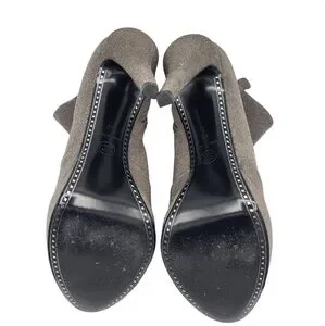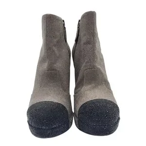 CHANEL CC Logo Cap Toe Suede Platform Ankle Boots Two Tone Booties Gray 40