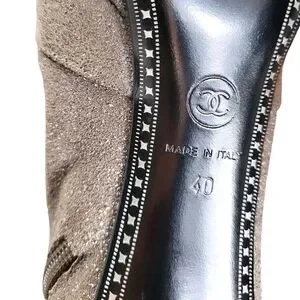 These are stunning boots for a timeless look from Chanel! They have beautiful suede uppers with glitter and tiny droplet embellishments that catch the light from every angle, making them perfect for elevating both casual and evening outfits.