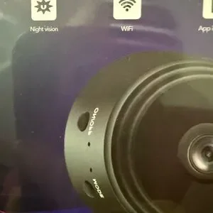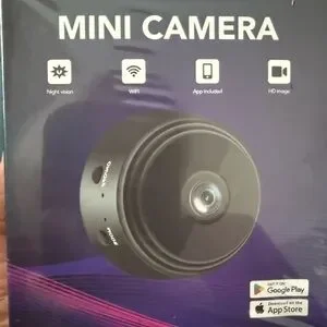Compact mini camera with night vision and WiFi connectivity. Includes app for easy use. HD image quality. Discreet. Magnetic stand.