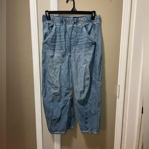 Soft denim trousers with elastic waistband. Easy to wear and style. Perfect for casual outings.