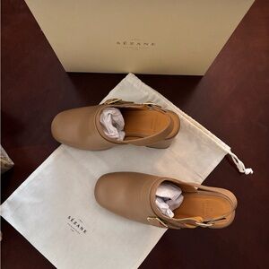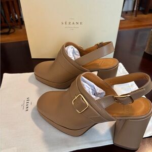 Sézane Rebecca Tan Block Heel Mules, Size 8 US/39