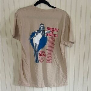 Show off your style with this Sabrina Carpenter graphic T-shirt. The beige color adds a neutral touch, perfect for any casual outfit.