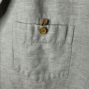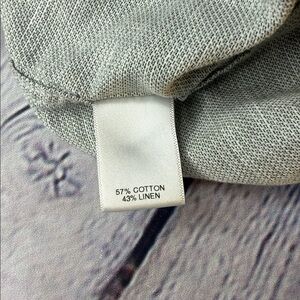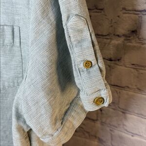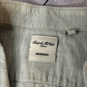 Elegant light gray linen shirt by Murano. Features a classic design. In gently used condition. Size large. No notable defects.