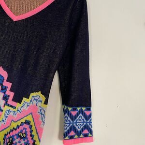Flying Tomato Quarter Sleeve Vneck Boho Sweater Dress Size Large Bold Multicolor