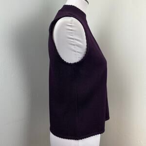 St John Purple Scalloped Edges Mock Neck Sleeveless Santana Sweater Vest Small