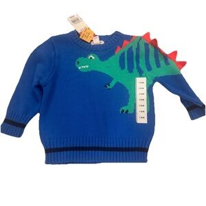 Bright blue sweater with a fun green dinosaur and red spikes. Perfect for playful days.