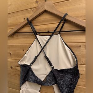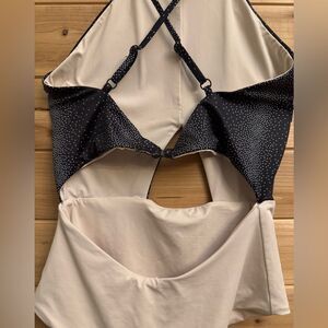 Like New Condition Two Toned One Piece Halter Cross Back Swimsuit