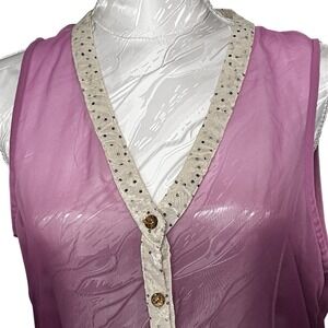 Sheer Ombre Shirt Sz L Gathered Layered Polka Dot Lace Back Blouse Fairy Grunge