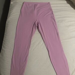 Stylish light pink high-waisted leggings. Perfect for workouts or casual wear.