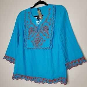 J. Crew Embroidered Linen Tunic Monaco Blue
