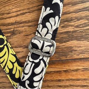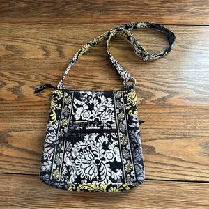VERA BRADLEY Baroque Crossbody Purse Hipster Black Yellow This bag is in good preowned condition with no rips or tears. Minimal dirt on the exterior. These bags are machine washable. See photos for details and measurements.