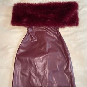 Nana Jacqueline- Gabrielle Leather Dress Red Size XS Fur Off Shoulder Midi