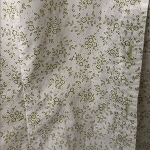 Chic floral button-up shirt in light green and white. Perfect for casual wear. Measurements length 26 inches armpit armpit 22 inches sleeve length 24 inches.