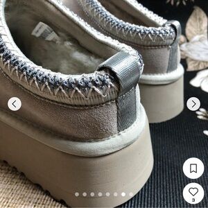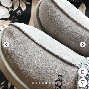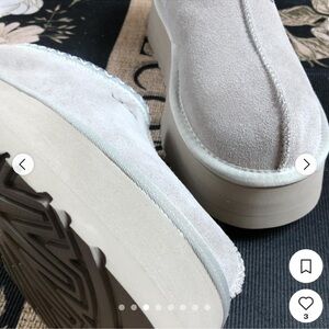 Stylish UGG slippers with plush interior. Platform accent enhances the look. Ideal for cozy comfort.